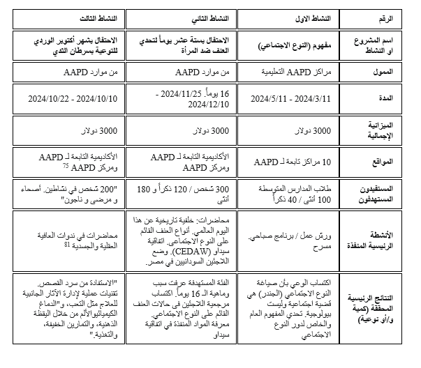انشطة عن الجندر والعنف ضد المرأة للعام 2023م